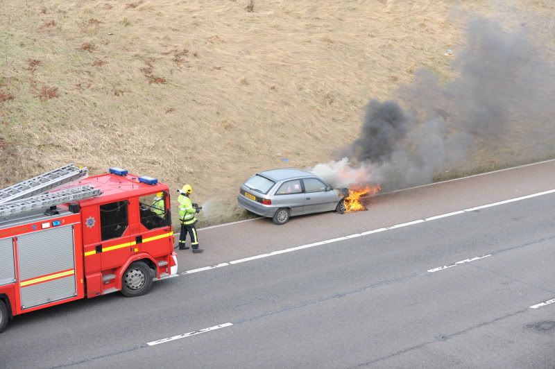 Nice shot and glad all were safe can't imagine anything more frightening than being in a car fire on the motorway...