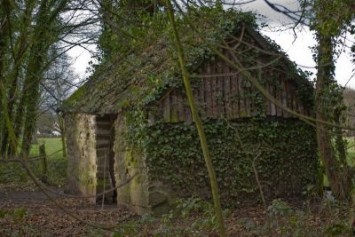 Was out looking for squirrels but nothing there but found this old hut, I know, the red bin, couldn't clone it out but I did try.